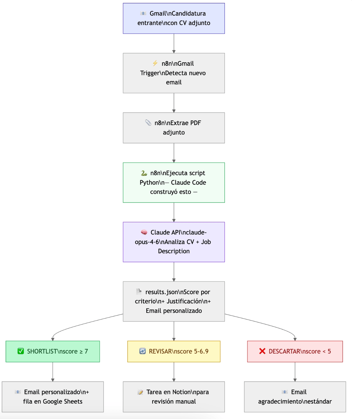 Y los problemas de HR, como el screening de candidatos, son exactamente el tipo de problema que Claude Code resuelve bien: lógica clara, criterios definibles, proceso repetible.